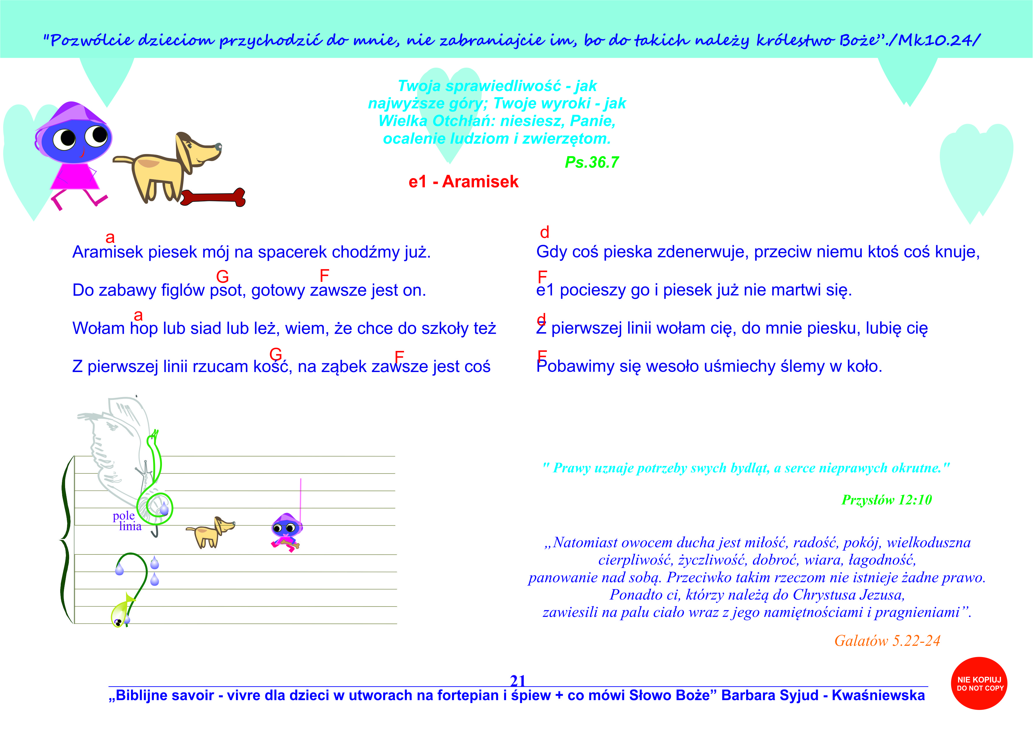 "Co na dany temat (działań bohaterów z piosenki) mówi Słowo Boże" i co na temat dzisiejszego mojego dania mówi Słowo Boże"