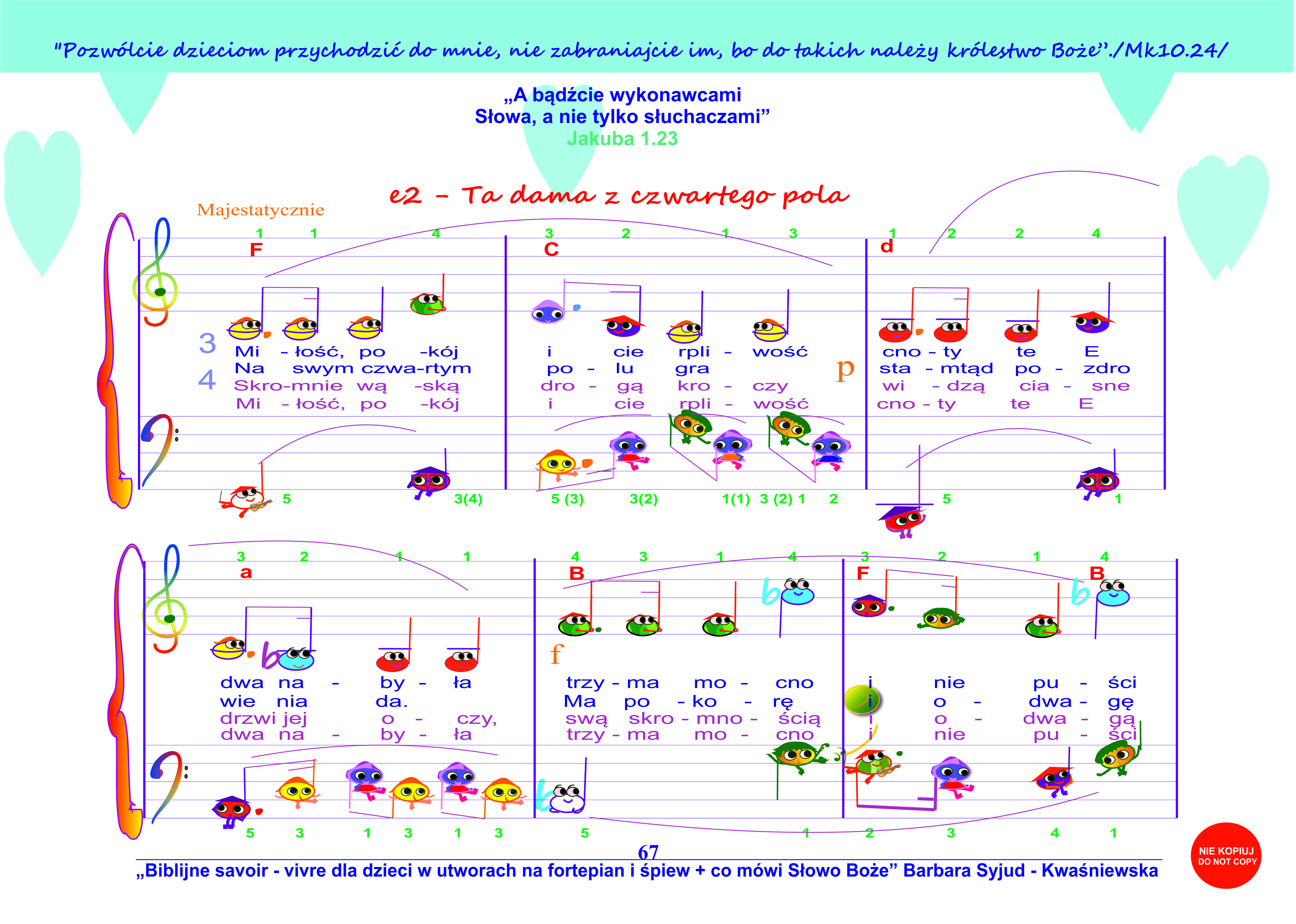 Ćwiczymy warsztat w grze na fortepianie z bohaterami Pięciodróżki. Biblijne Savoir Vivre na fortepian i śpiew, to podręcznik nutowy dla pasjonatów muzyki nie tylko wokalnej. Książka dodaje skrzydeł do grania na fortepianie oburącz w kluczach wiolinowym i basowym w trochę bardziej zaawansowanej już technice gry. W przygotowaniu jest identyczny podręcznik w wersji nut tradycyjnych.