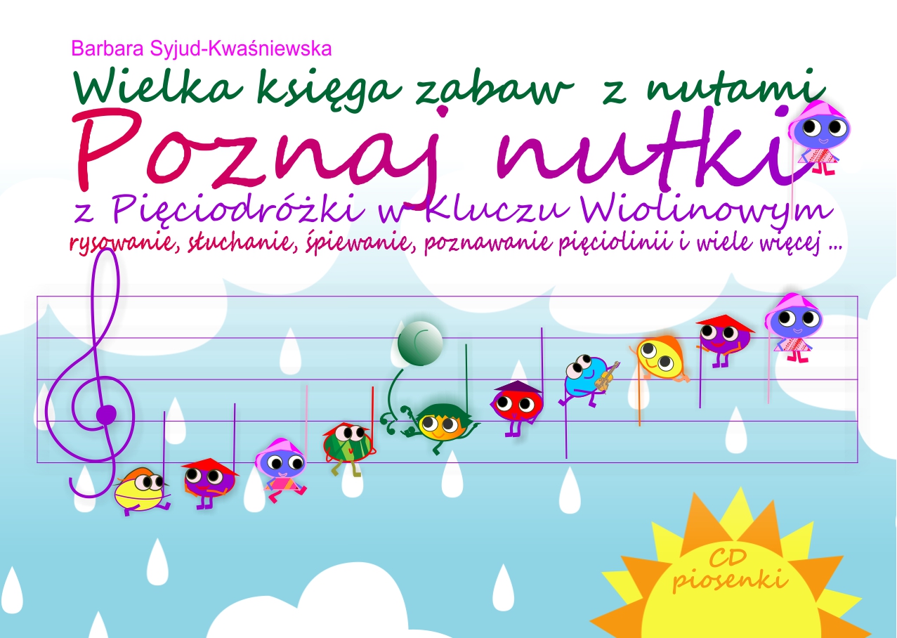 Niemal każdego muzyka pragnieniem było kiedyś poznać nuty, aby móc rozczytać ulubiony utwór, zapisać swoje kompozycje, lub móc współpracować z innymi muzykami. Książka przeznaczona jest do wspólnej zabawy nauczyciela z klasą, instruktora lub rodzica z dzieckiem oraz do samodzielnej zabawy dziecka w wieku przedszkolnym lub szkolnym. Tematy zabaw są różne: nauka nutek poprzez słuchanie piosenek, rozpoznawanie ich wg nazw, czytanie lub słuchanie bajki, układanie karteczek wg kolejności dźwięków w gamie, Memory z nazwami nut, rysowanie, rozwiązywanie zagadek i rebusów. Wszystkie zabawy służą temu aby poznawać i zrealizować ustalony program nauki czytania nut w kluczu wiolinowym oraz zapisywania ich na odpowiednim miejscu na pięciolinii. Naszej pracy towarzyszyć będzie płyta, na której nagrane są piosenki inspirowane muzyką klasyczną. Bohaterami piosenek są Nutki z Pięciodróżki. Każda ma swoje imię zaczynające się literą alfabetu muzycznego: C jak Cieszysław, D jak Darek, E jak Ewelinka, F jak Franek, G jak Grześ, A jak Andrzej, H jak Henryk. Każda nutka ma swoje miejsce na pięciolinii i przygody, dzięki którym uczy się żyć wg praw miłości. Płyta regularnie słuchana pomoże utrwalić materiał, rozśpiewać, a także razem z bohaterami Pięciodróżki bawić się i muzykować.